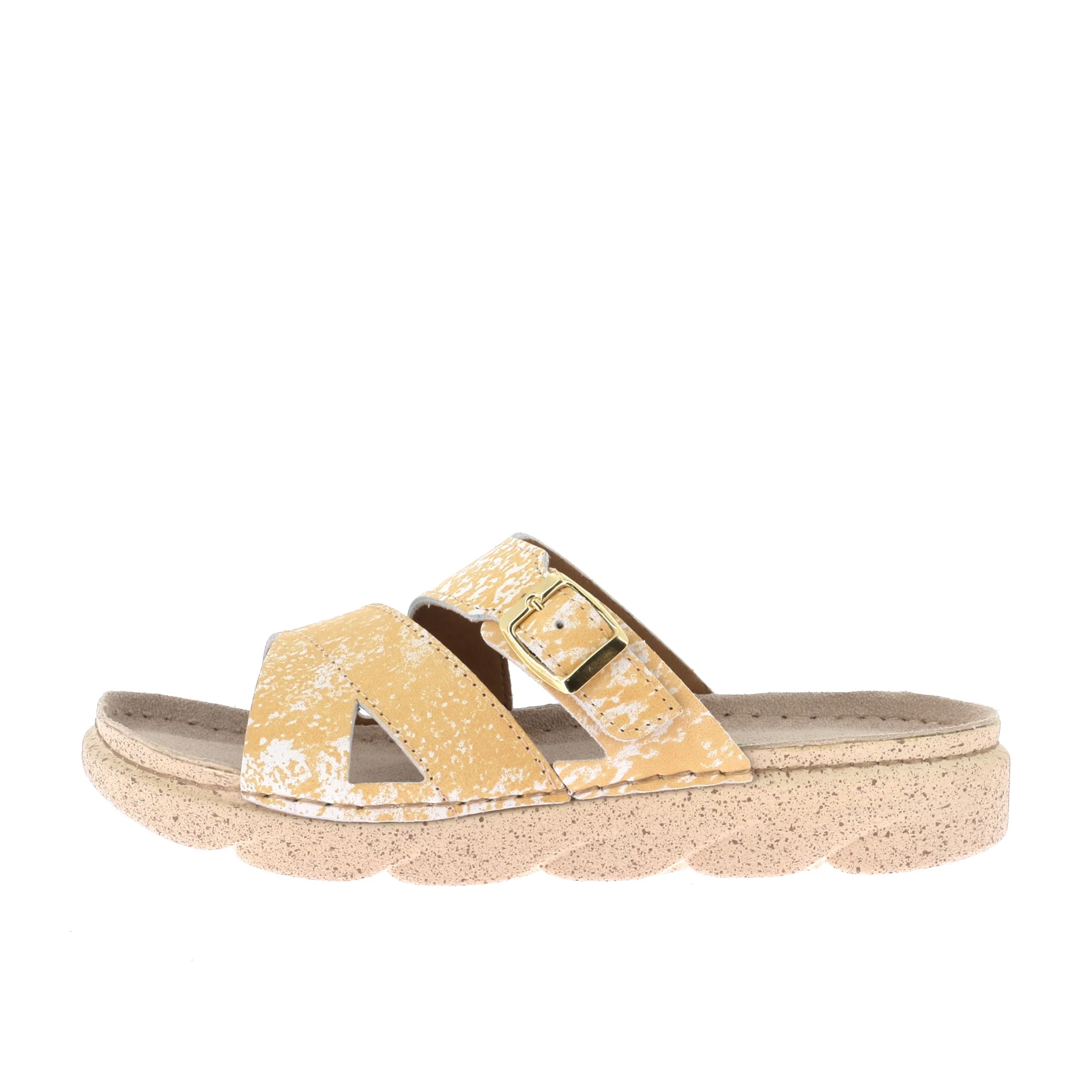 Découvrez les mules PATRIZIA 10756-8800, un mélange parfait de confort et d’élégance, idéales pour toutes vos occasions estivales. Disponibles en jaune, ces mules sont conçues avec une tige en cuir, une doublure synthétique, et une semelle intérieure en cuir pour un confort optimal. La semelle extérieure synthétique assure une durabilité exceptionnelle. La fermeture par boucle garantit un ajustement parfait, et la semelle épaisse de 3,5 cm ajoute une touche de sophistication.