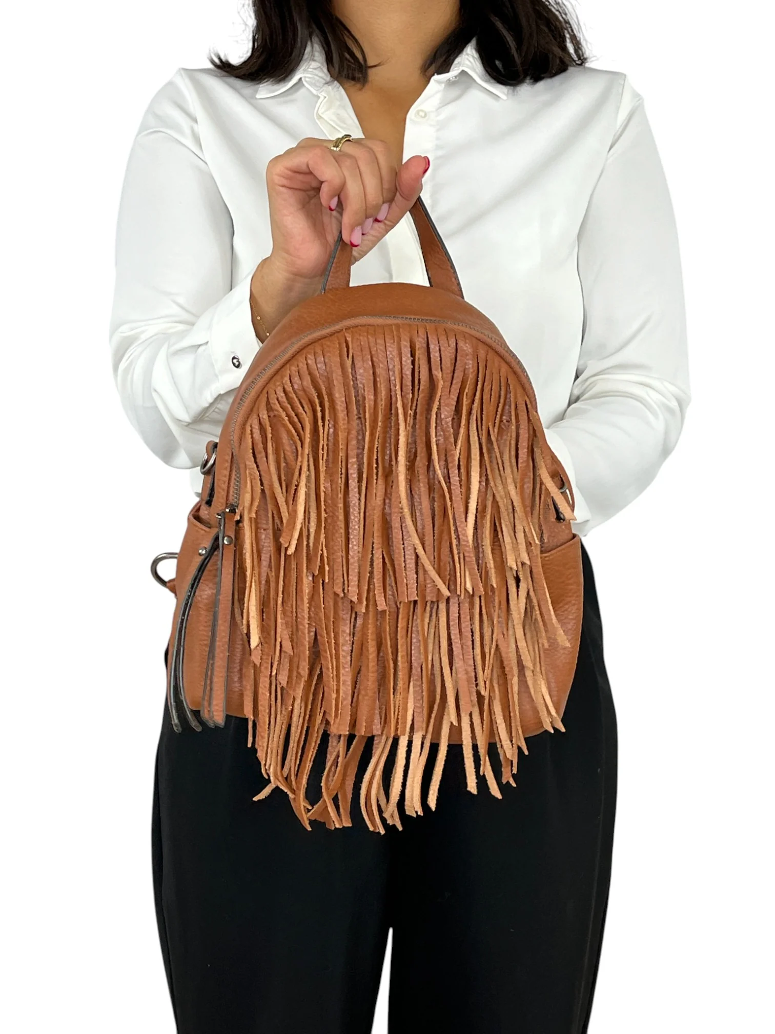 Le sac MANDOLINE 11050 revisite le style bohème avec ses jolies franges et sa teinte camel chaleureuse. Un accessoire plein de caractère qui apporte une touche de mouvement et d’élégance à vos tenues.