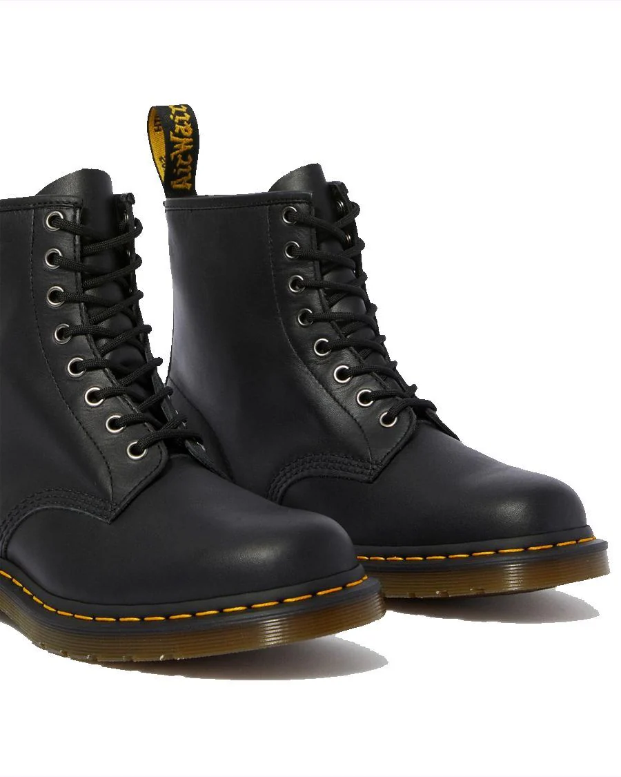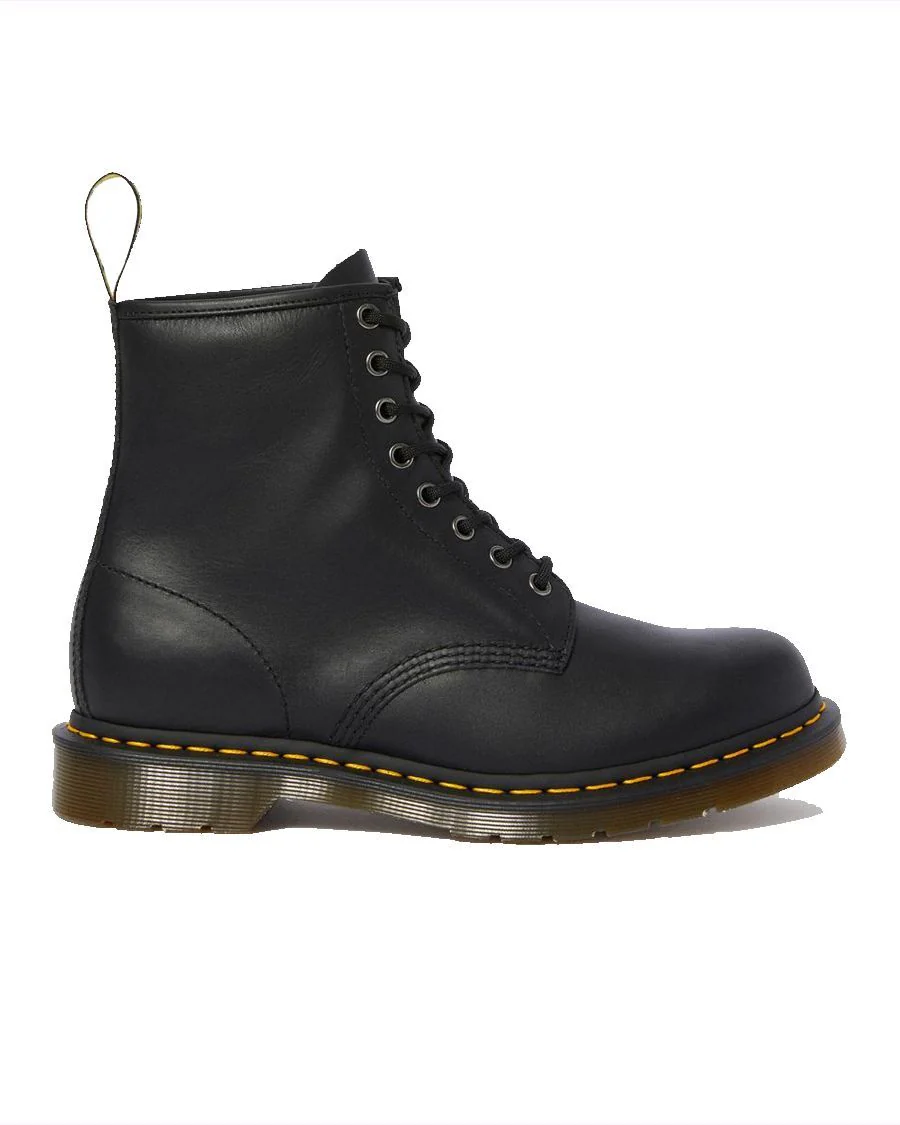 La 1460 est la botte originale de Dr. Martens. Cette botte noire est dotée d’une tige en cuir Nappa doux et souple. Elle présente 8 œillets, des côtés rainurés, une boucle de talon et une semelle confortable à coussin d’air. L’ADN de Doc est visible avec les coutures jaunes, les côtés rainurés et la boucle de talon AirWair scriptée. Construite sur l’emblématique semelle à coussin d’air Dr. Martens, résistante à l’huile et aux graisses, avec une bonne résistance à l’abrasion et au glissement. Moderne et tendance, la botte emblématique 1460 a tout pour plaire.