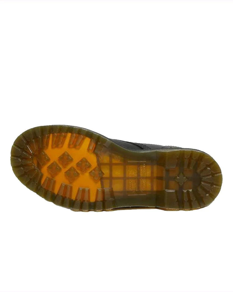 Détails iconiques des Docs : bords rainurés, coutures apparentes et languette au talon