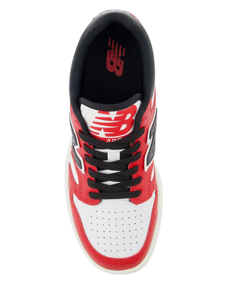 Mots-clés : chaussure garçon, soulier enfant, NEW BALANCE 480, chaussure rouge et blanc, basket-ball enfant, chaussures durables, chaussures confortables, chaussures pour l’école, chaussures sport enfant, chaussures de sport garçon.