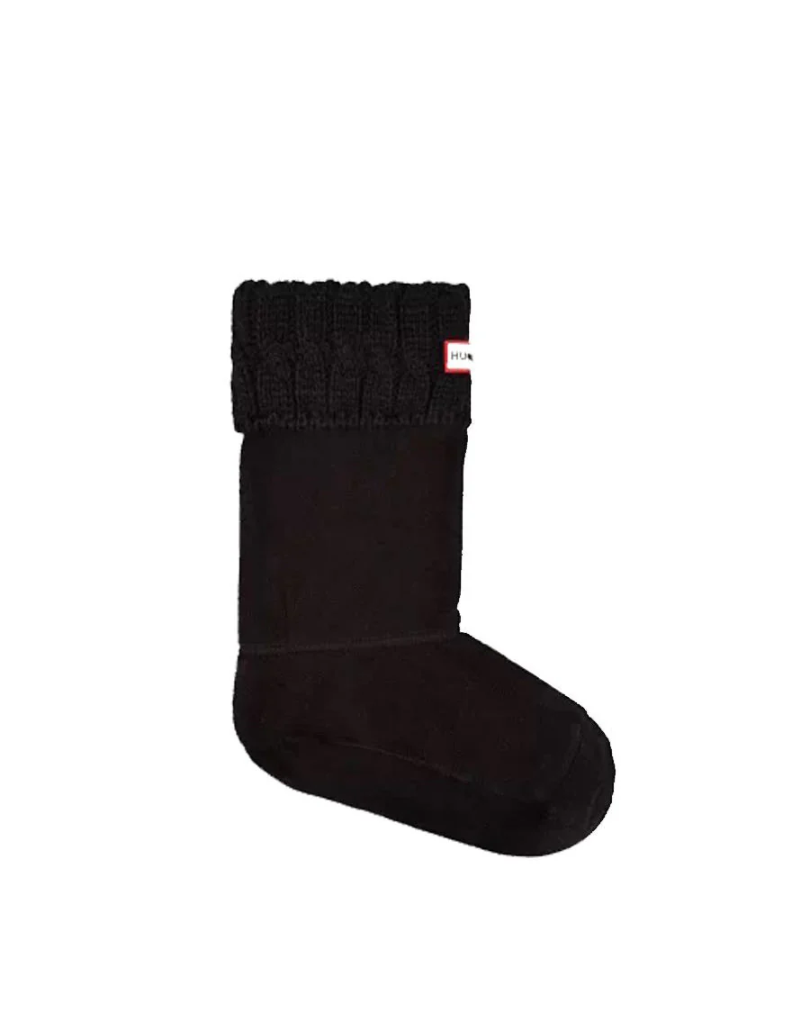 Bas 6 STICH CABLE de HUNTER HUNTER modèle: WAS1018AAB-BLK Personnalisez votre botte Hunter avec ces chaussettes chaudes et douillettes. Conçues pour s’ajuster parfaitement à la botte en caoutchouc courte Original, ces chaussettes arborent un revers tricoté stylé ainsi que le logo Hunter Original. Jambe en 100% polaire polyester Revers six torsades 100% acrylique Logo PVC
