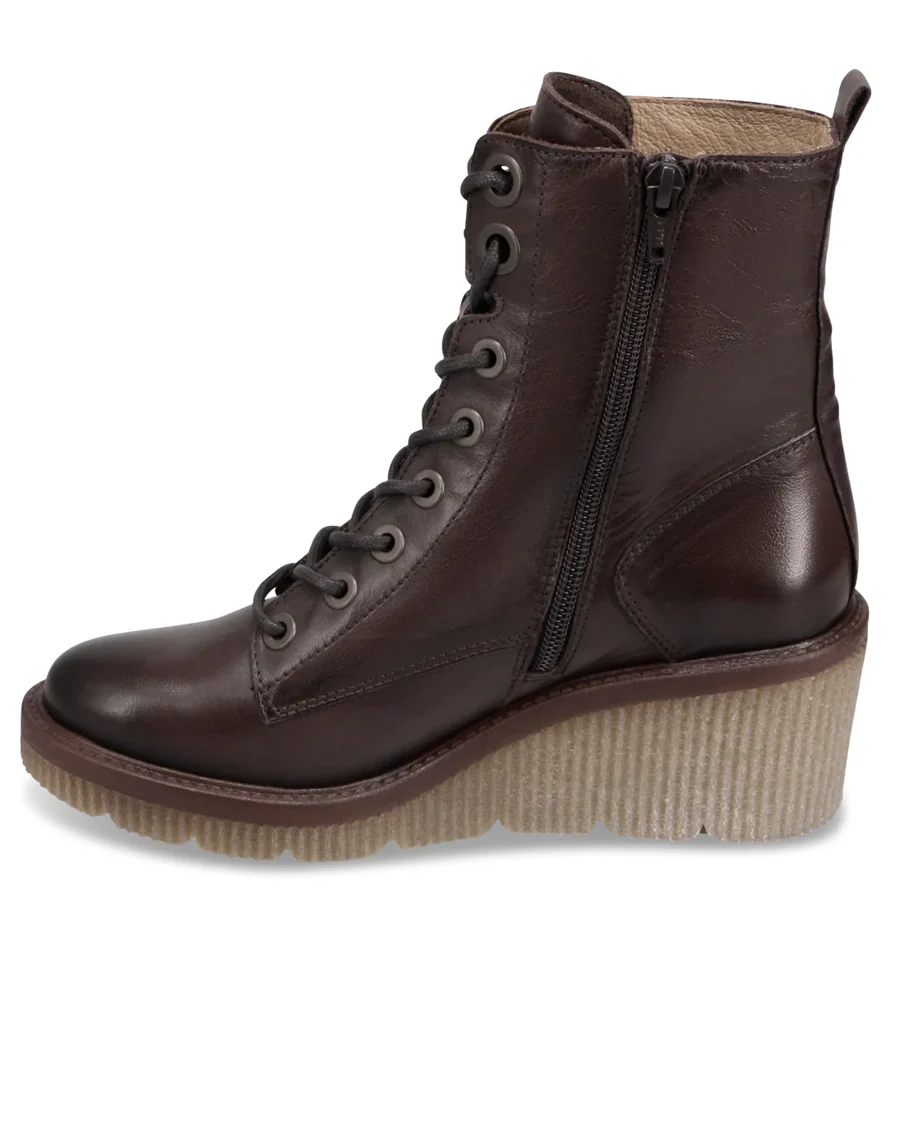 Inspirée par l’élégance urbaine, cette botte à talon compensé de 6 cm offre un confort remarquable grâce à sa plateforme de 2 cm et à sa doublure en microfibre douce. Les lacets sur le devant apportent une touche raffinée, tandis que la fermeture éclair intérieure facilite l’enfilage. La semelle extérieure synthétique, sculptée et robuste, garantit une bonne adhérence, idéale pour marcher avec assurance sur toutes les surfaces.