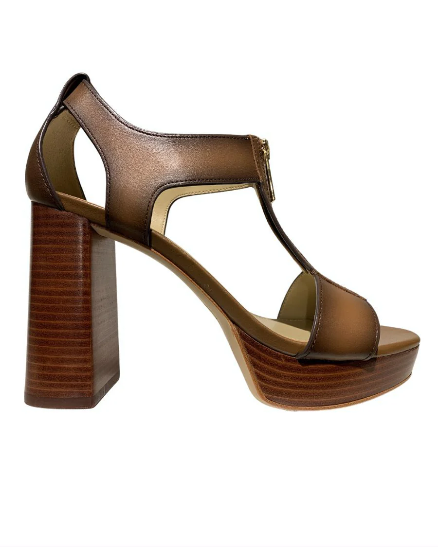Sandale tan à talon pour femme BERKLEY MID 40R4BRMS4L-230 de MICHAEL KORS.