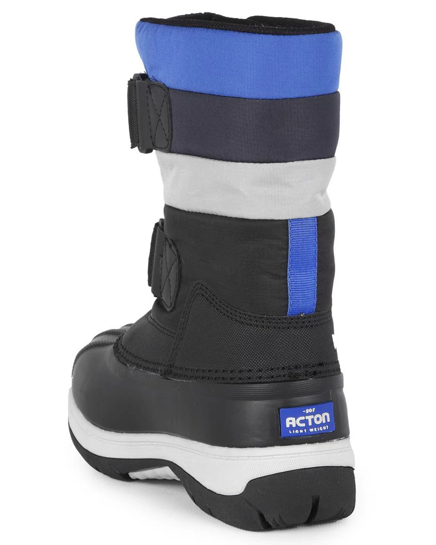 Pour la maman soucieuse du confort et de la sécurité de son garçon, la botte d’hiver noir et bleu BUBBLEGUM A8390-J06 de ACTON est le choix parfait pour affronter les journées froides et les activités hivernales avec style et praticité.
