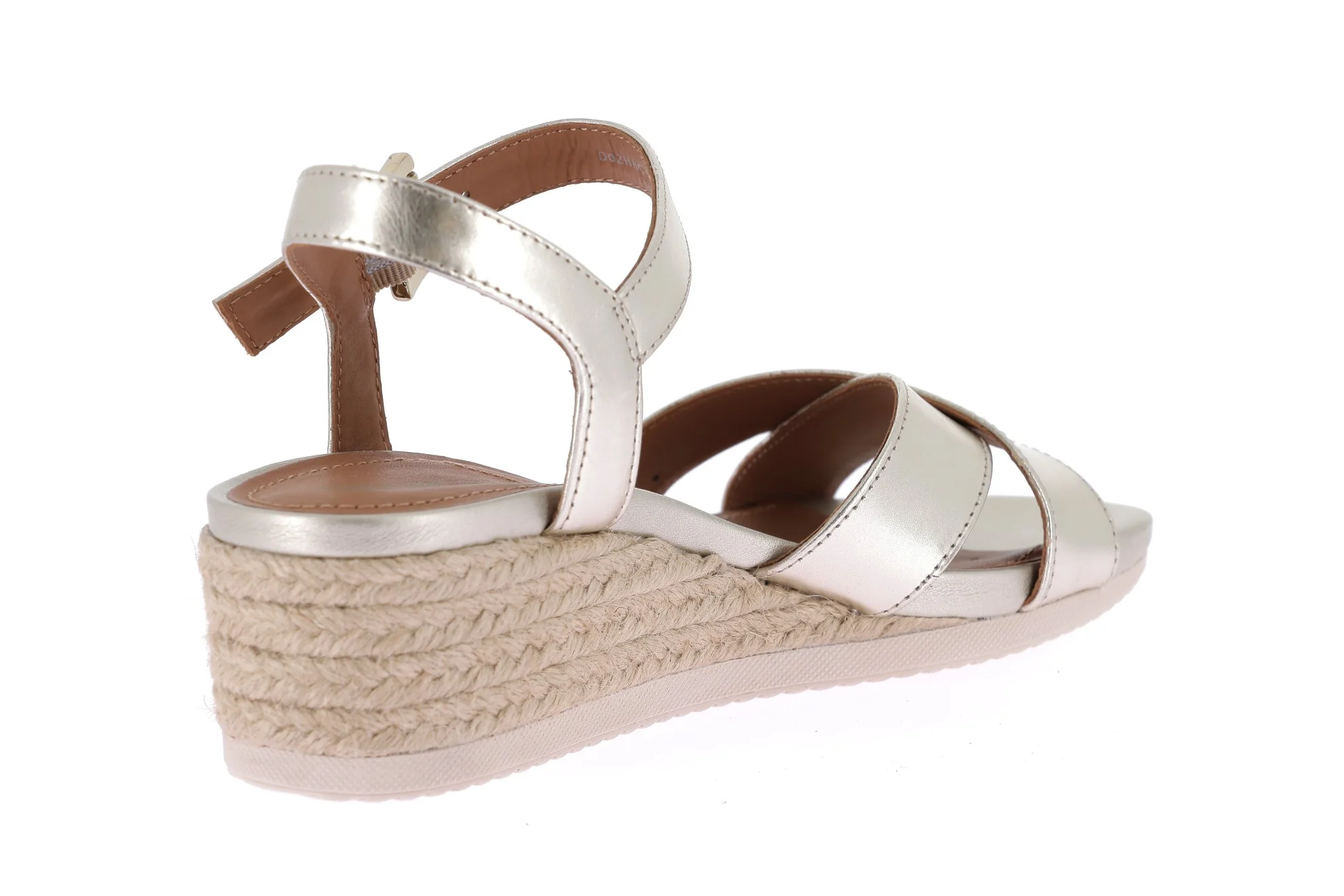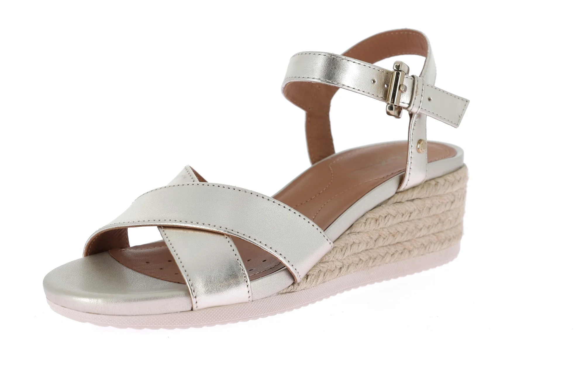 Les Geox Ischia Corda allient élégance et bien-être pour vous accompagner tout l’été. Leur teinte dorée et leur design compensé offrent un style féminin et raffiné.