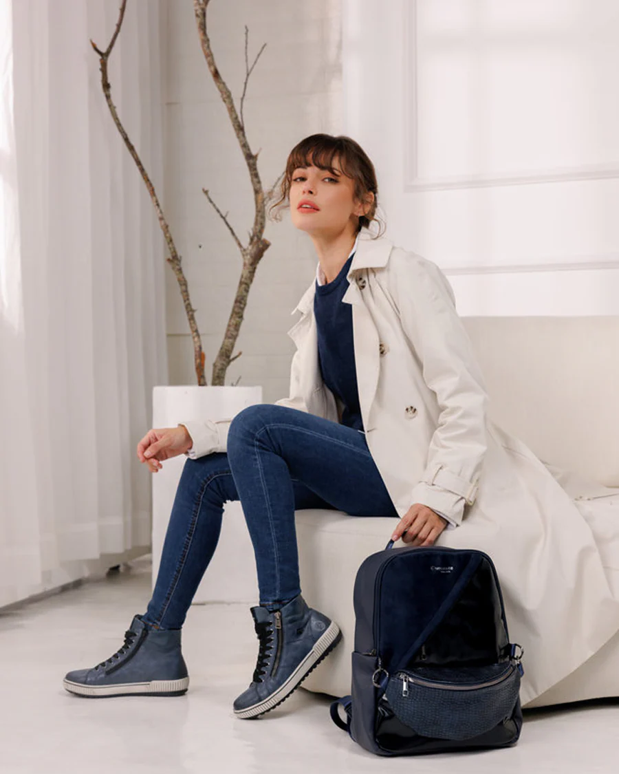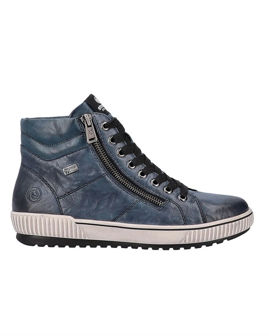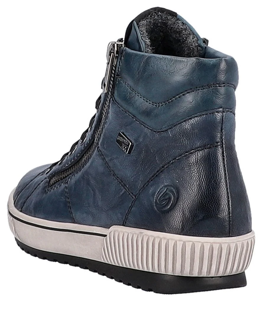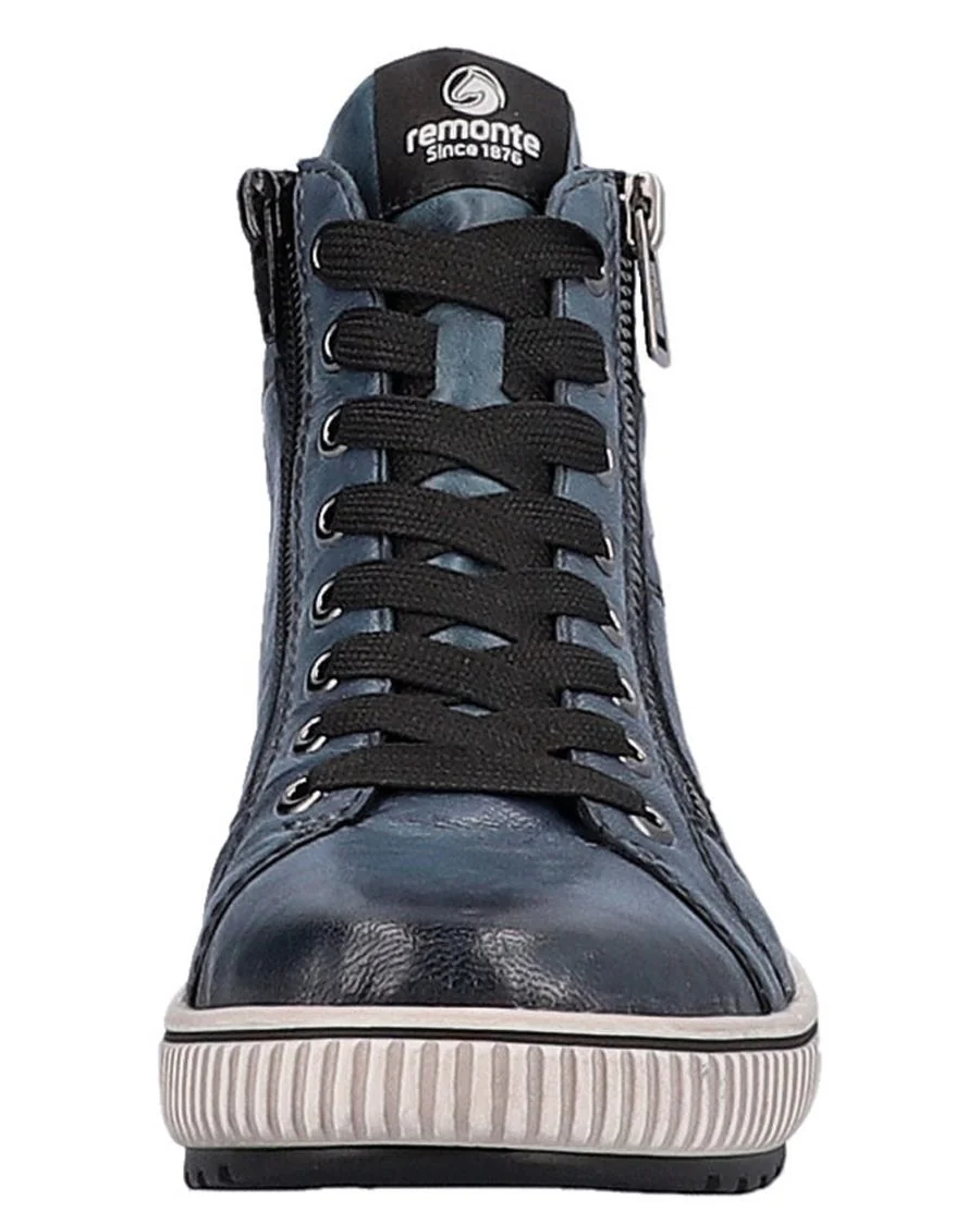 Pensée pour s’adapter à votre quotidien bien rempli, ce bottillon bleu foncé vous accompagne aussi bien lors de vos déplacements en ville que pendant vos journées de travail. Son cuir souple combiné à une matière synthétique durable, sa membrane imperméable Remonte TEX et sa doublure chaude créent une barrière fiable contre l’humidité sans compromettre la respirabilité. Les deux fermetures éclair latérales et les lacets noirs apportent une touche moderne tout en facilitant l’enfilage. La semelle intérieure amovible Remonte Soft, moelleuse et amortissante, assure un confort prolongé à chaque pas.