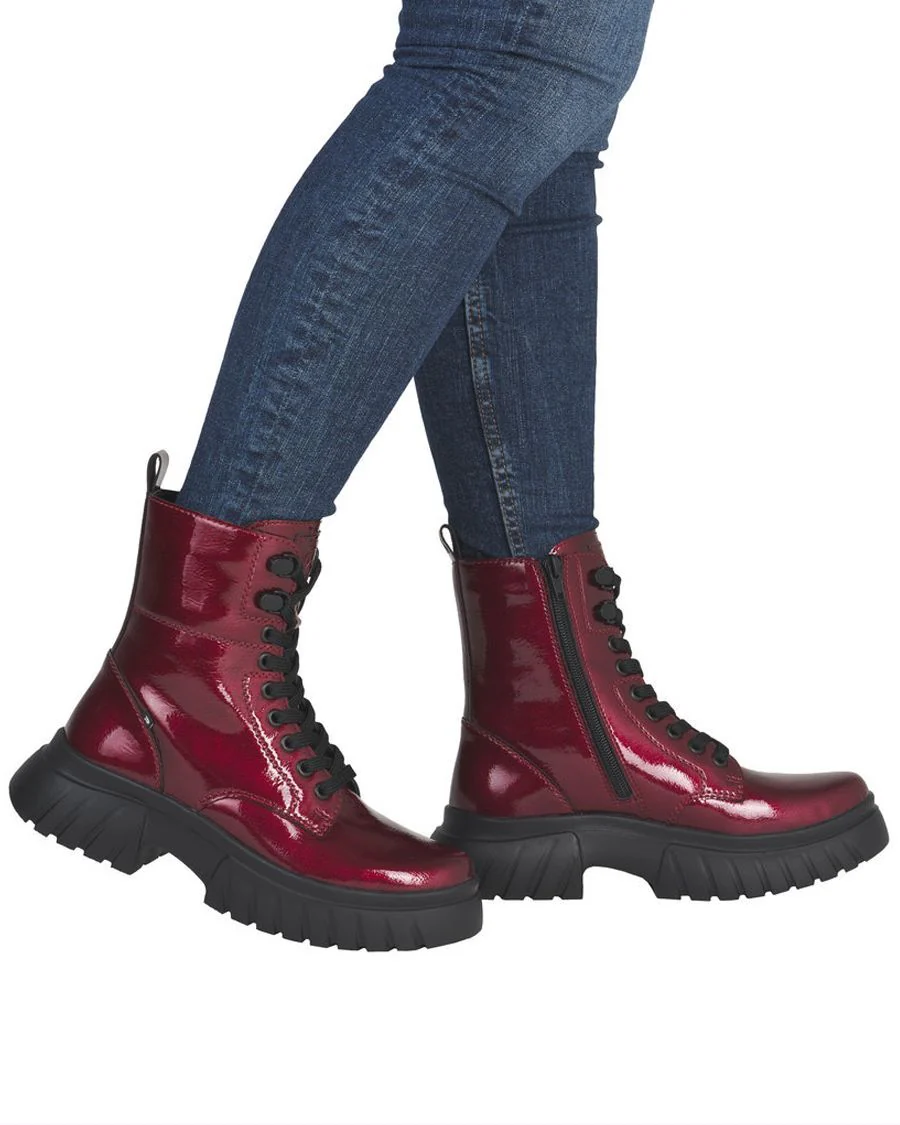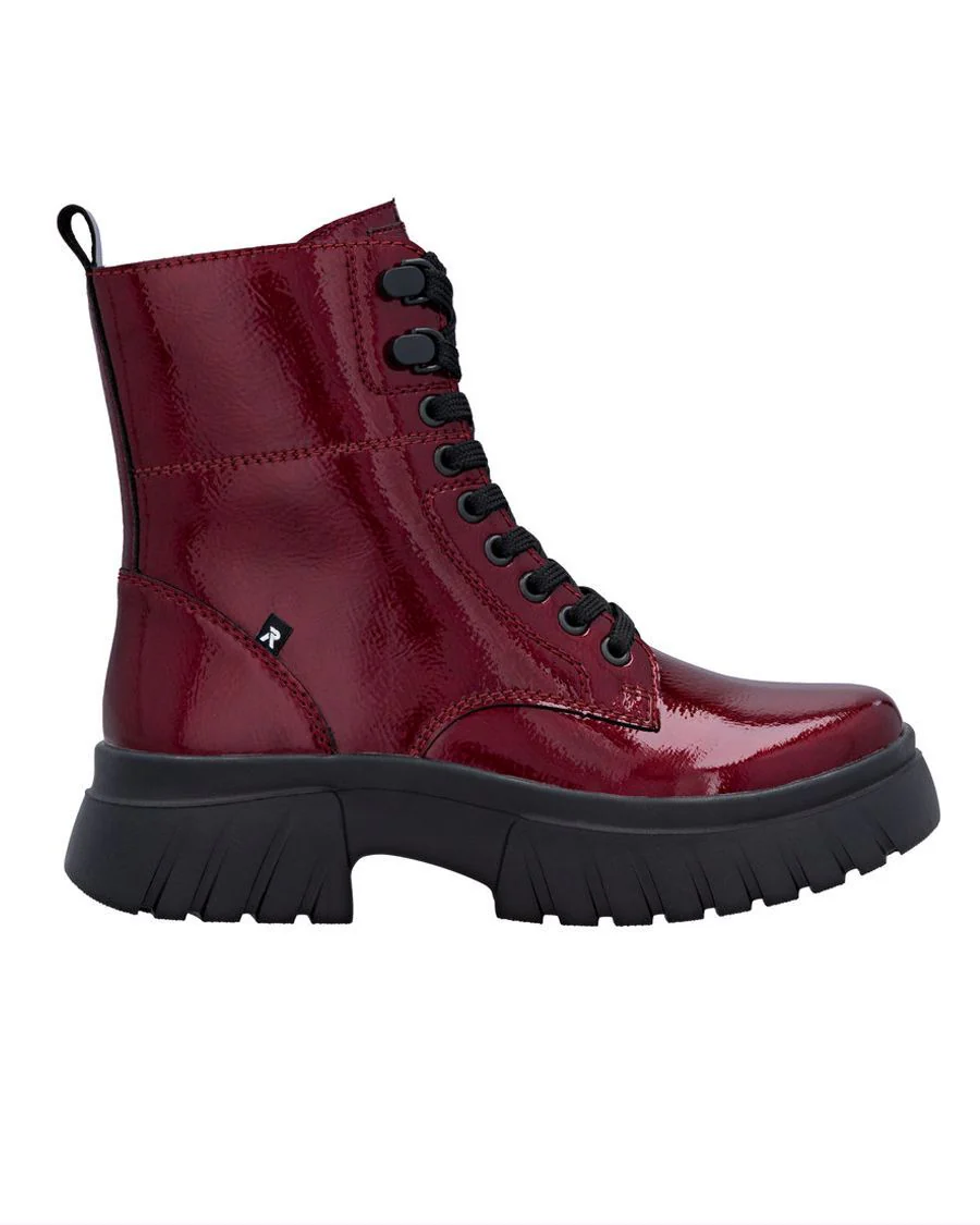 Pensée pour la femme active qui ne transige pas entre confort et style, le bottillon de ville RIEKER W1870-35 en cuir verni rouge foncé est le complice idéal de vos sorties urbaines et de vos journées bien remplies. Élégant et pratique, il apporte une touche de caractère à vos tenues automne-hiver.