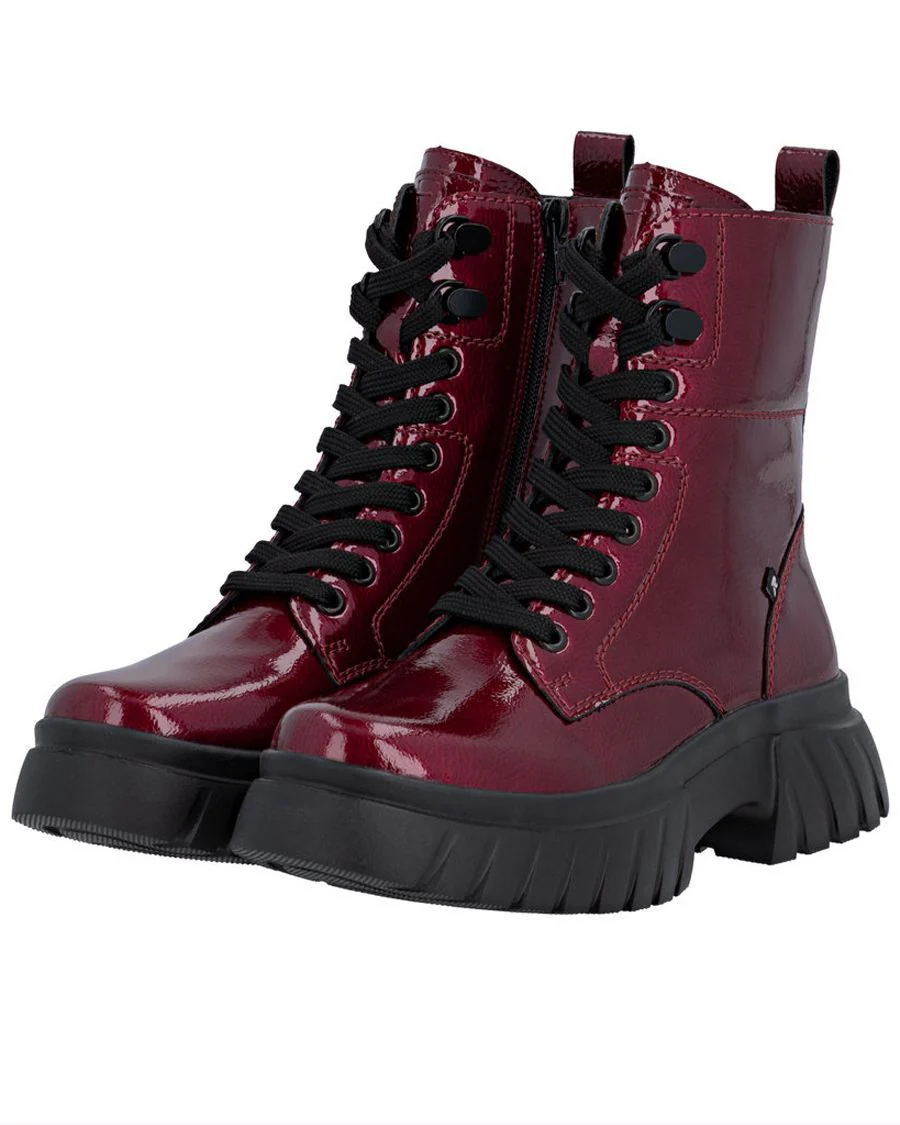 Les points forts de cette bottine urbaine RIEKER rouge foncé :