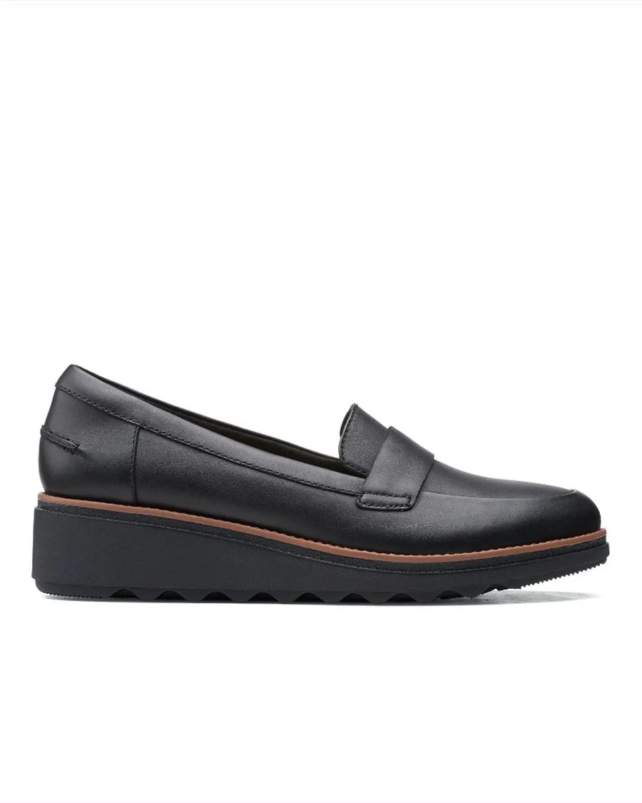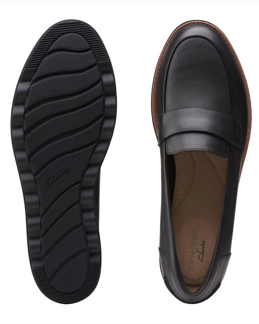 Découvrez le flâneur noir SHARON GRACIE 26156816 de Clarks, pensé pour la femme qui cherche une chaussure à enfiler alliant confort et élégance pour ses activités quotidiennes. Son design classique et polyvalent s’adapte parfaitement à toutes vos tenues.