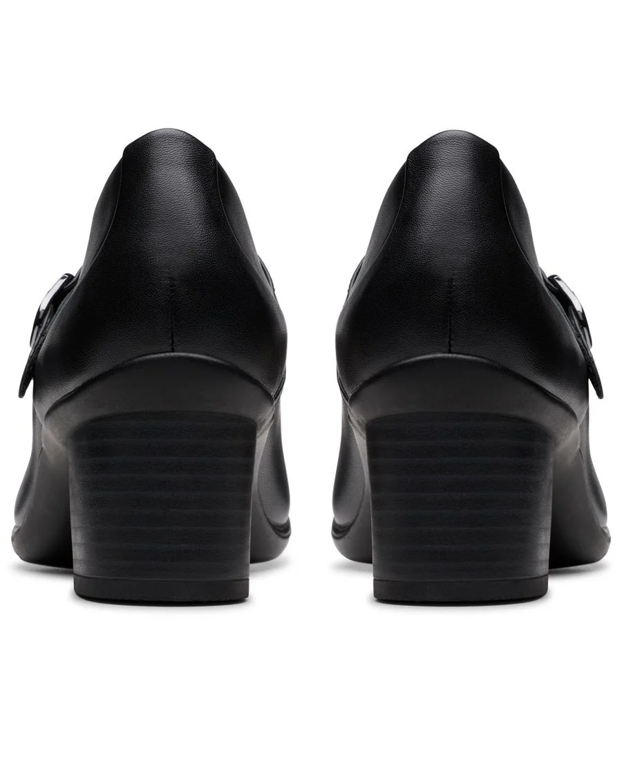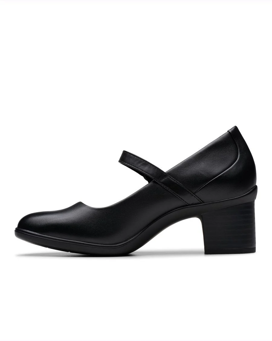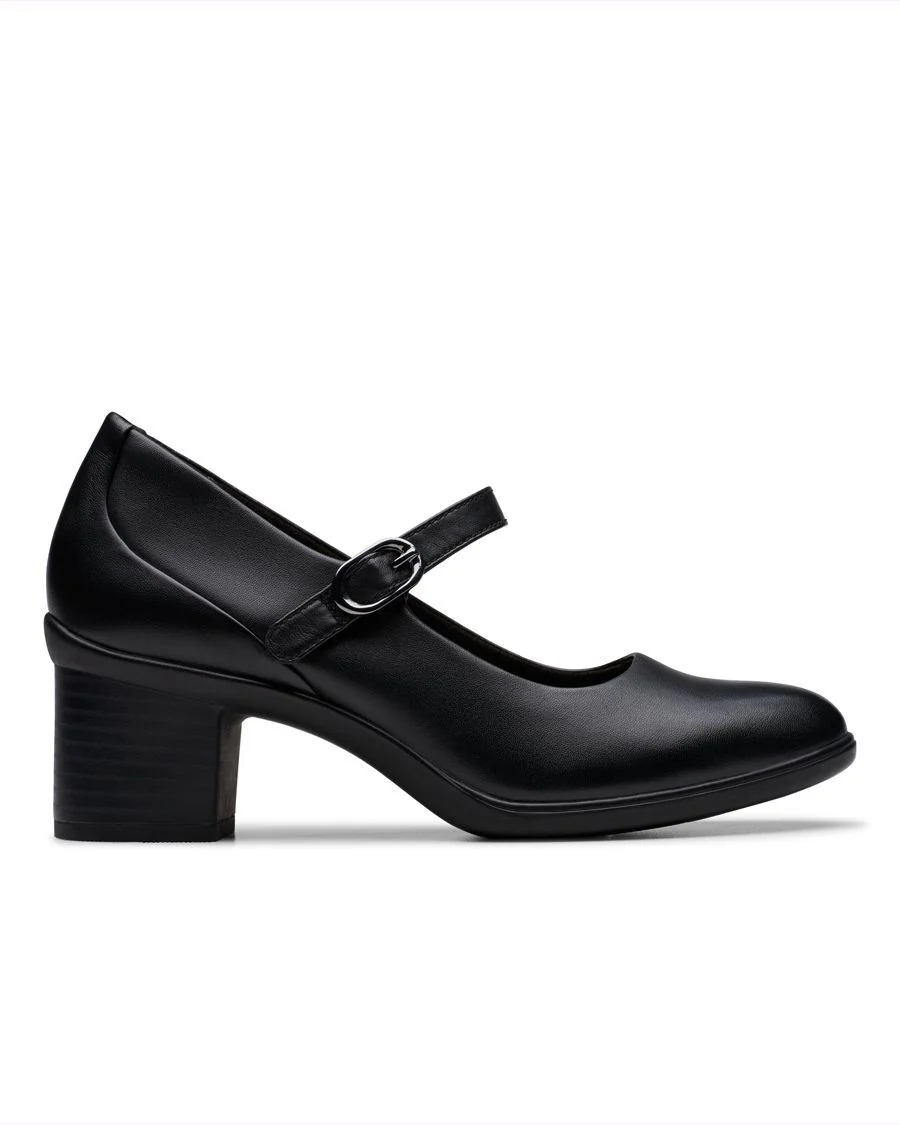 Ces chaussures à talon sont confectionnées en cuir de première qualité et intègrent la semelle intérieure Contour Cushion de Clarks, qui épouse la forme du pied pour un maintien optimal. La bride élégante avec boucle argentée décorative apporte une touche chic et permet un ajustement facile, tandis que le talon de 5 cm assure une allure féminine et une stabilité parfaite tout au long de la journée.