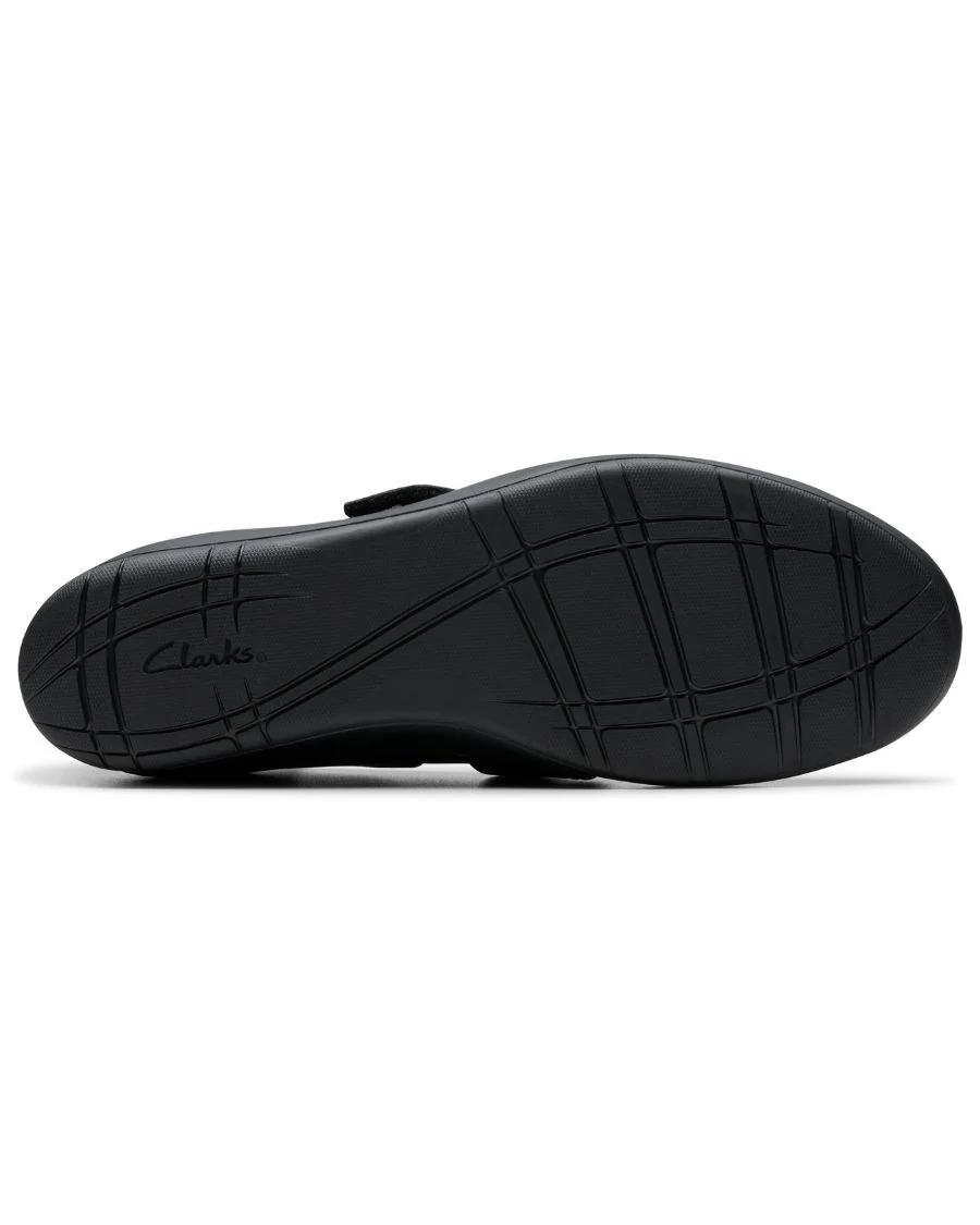 Découvrez l’élégance et le confort réunis avec la chaussure noire à talon compensé Suttyn May de CLARKS. Conçue pour la femme moderne à la recherche d’une chaussure facile à enfiler et adaptée à une utilisation quotidienne, ce modèle polyvalent ne sacrifie ni le style ni le confort. Sa tige en cuir noir premium, associée à une bride auto-agrippante en textile extensible, assure un ajustement parfait tout en offrant un look raffiné.