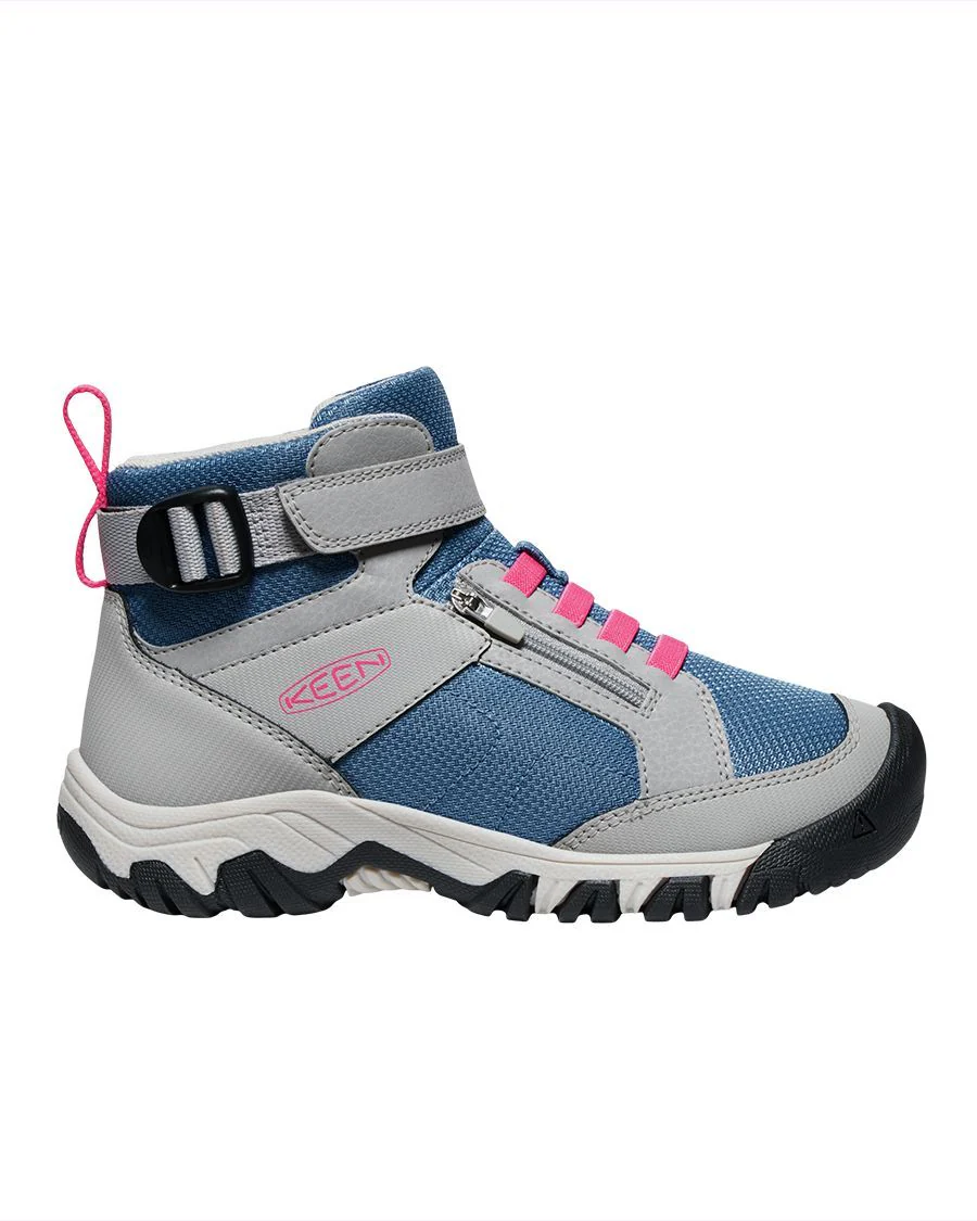 Mots-clés : botte mi-saison, botte enfant, botte grise, botte bleue, botte facile à enfiler, chaussure de randonnée enfant, KEEN, TARGHEE BOUNDLESS, chaussure résistante, confort, ajustement personnalisable, semelle traction, mode enfant.
