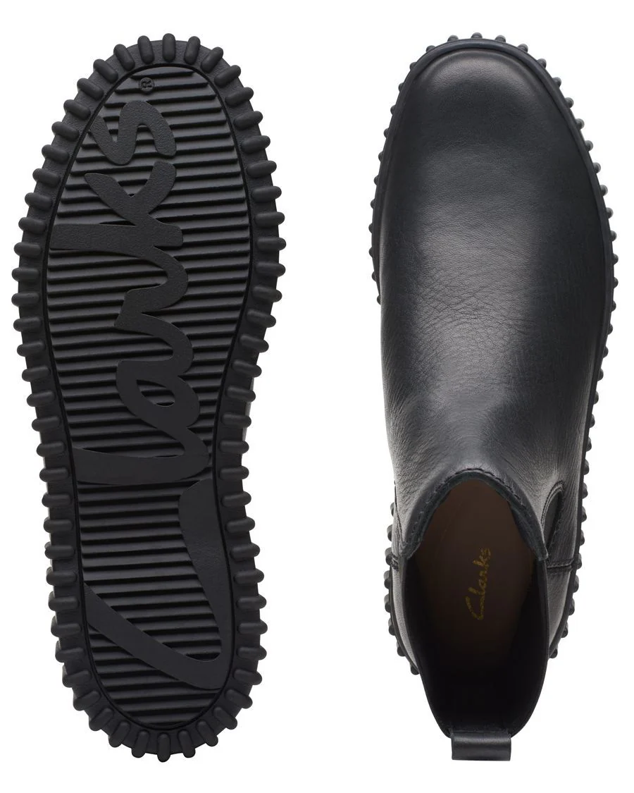 Mots-clés : botte urbaine noire femme, bottine noire tendance, botte cuir noir CLARKS, bottine confortable automne, botte avec semelle nervurée, bottine à talon confortable, chaussure femme automne, bottine cuir flexible, botte CLARKS femme.