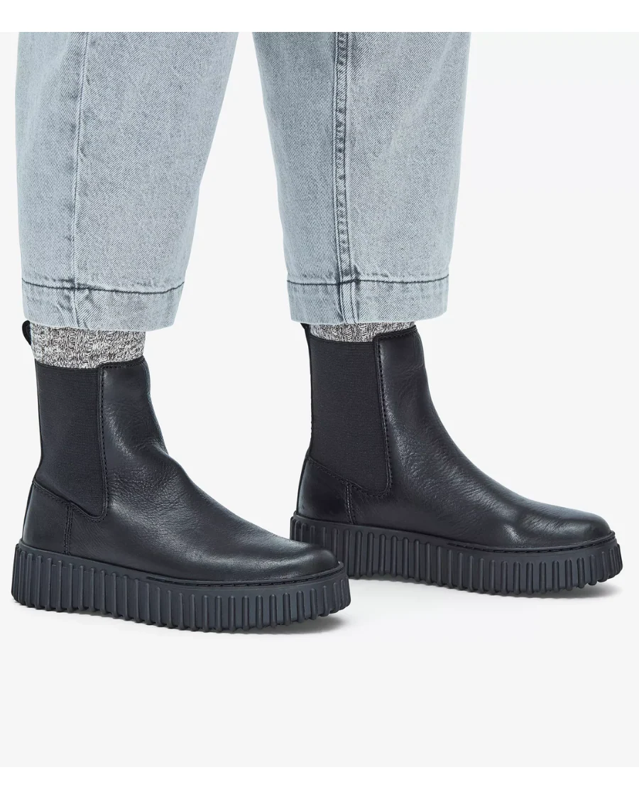 La botte urbaine noire pour femme TORHILL MAPLE 26173858 de CLARKS est le choix parfait pour celles qui recherchent style et confort cet automne. Conçue pour la femme active et moderne, cette bottine en cuir noir de première qualité allie parfaitement look tendance et fonctionnalité. Son design minimaliste avec des panneaux élastiques et des coutures soignées s’adapte à toutes les tenues urbaines, tout en offrant une allure élégante et affirmée.