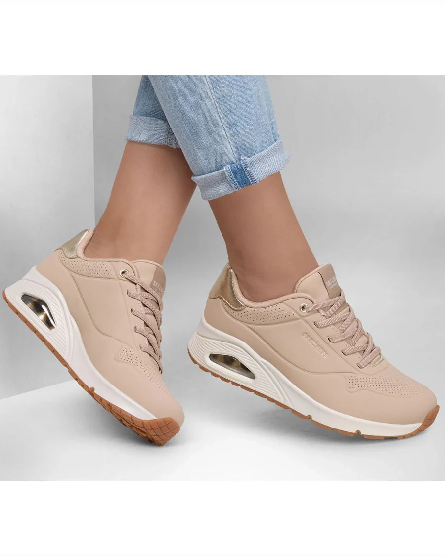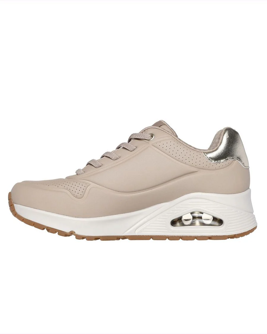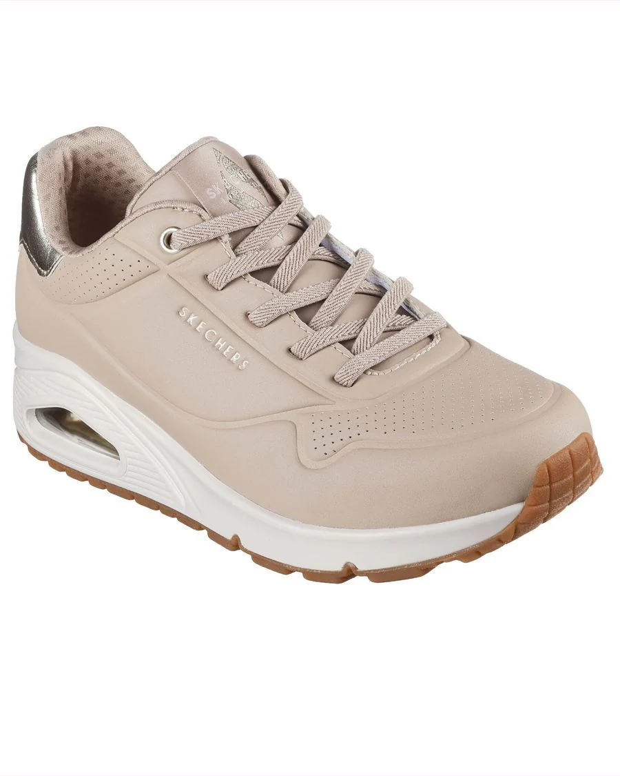 Adoptez un style urbain raffiné avec la chaussure UNO-SHIMMER AWAY 155196-NUDE de Skechers. Conçue pour la femme active qui ne fait aucun compromis entre confort et élégance, cette sneaker beige rehausse vos tenues avec une touche de modernité et de brillance.