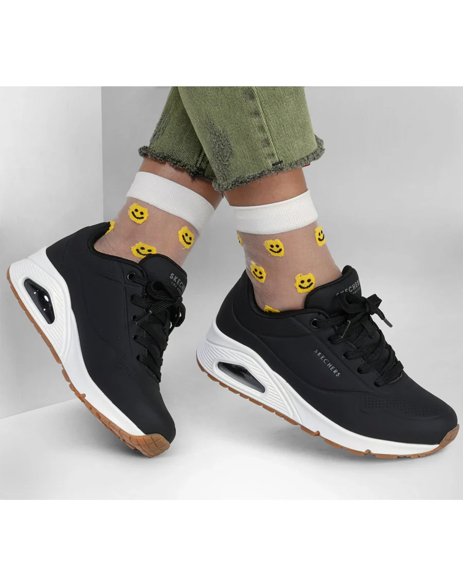 Parfaites pour les activités quotidiennes, les promenades en ville ou les journées de travail, les chaussures UNO-STAND ON AIR de SKECHERS allient mode et fonctionnalité pour répondre aux besoins des femmes actives.