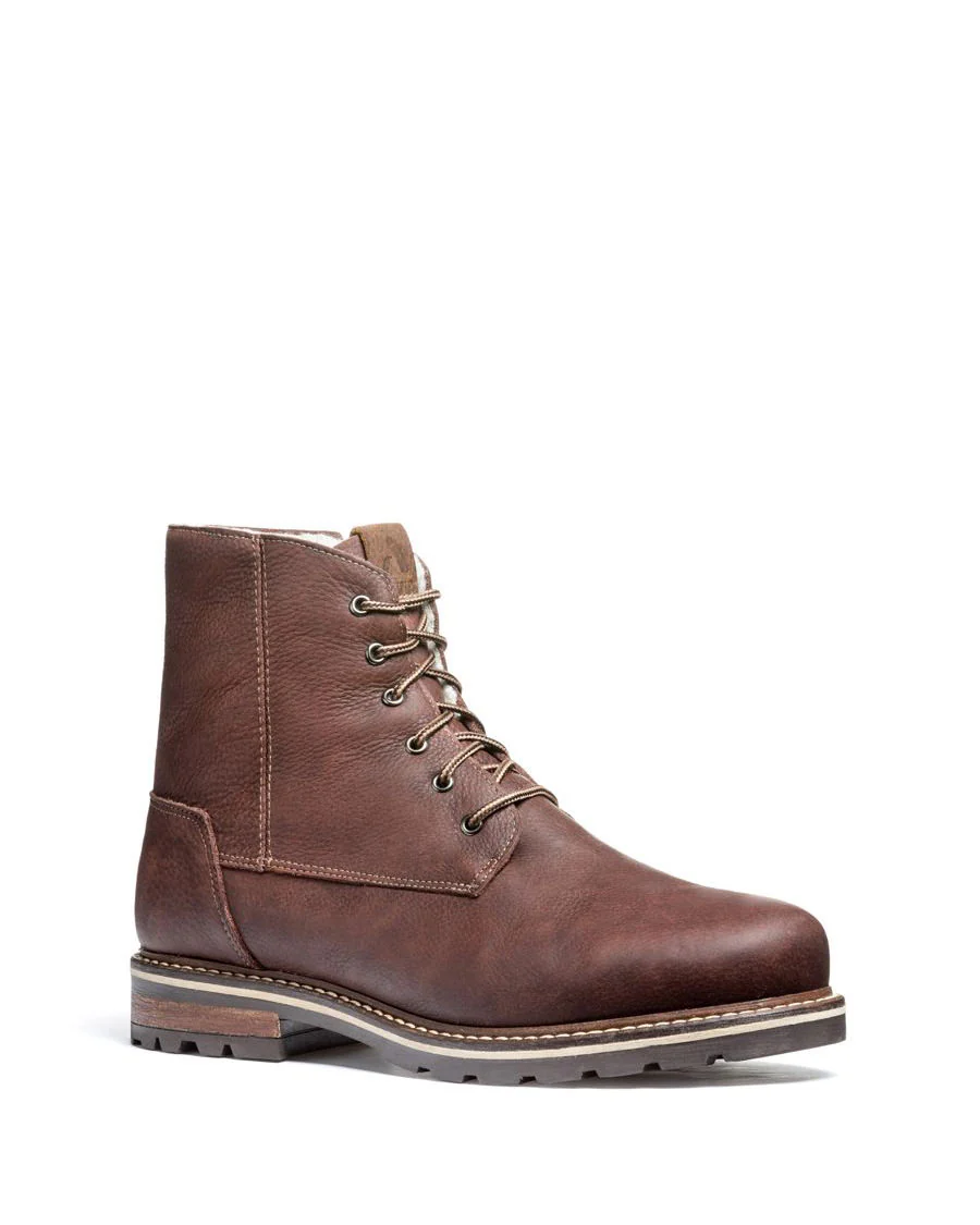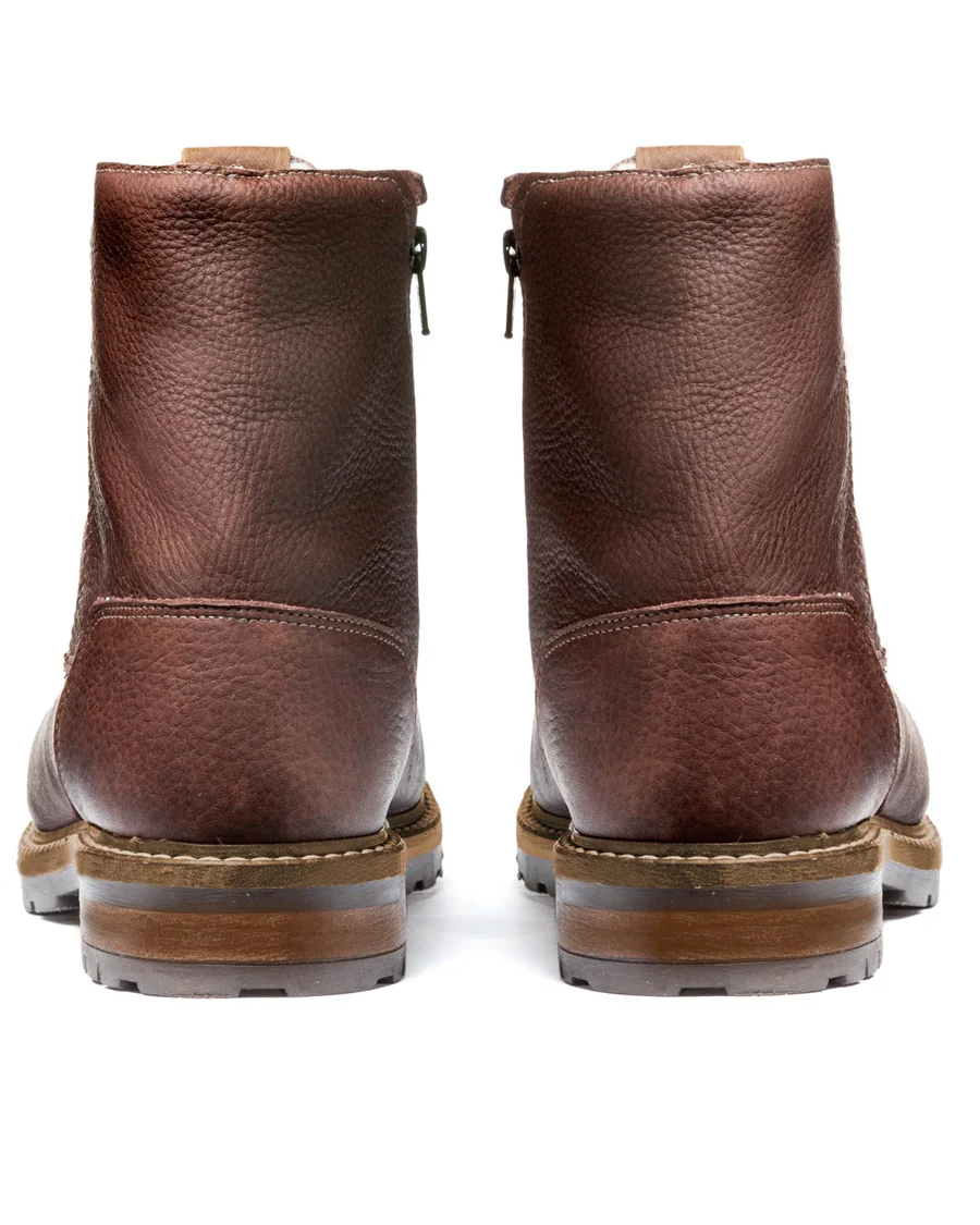 Fabriquée à la main au Québec, elle offre un cuir pleine fleur imperméable aux coutures scellées, garantissant une résistance accrue à l’humidité tout en maintenant un look sophistiqué. La fermeture éclair YKK vous permet d’enfiler facilement la botte, tandis que les lacets ajustables assurent un maintien parfait.