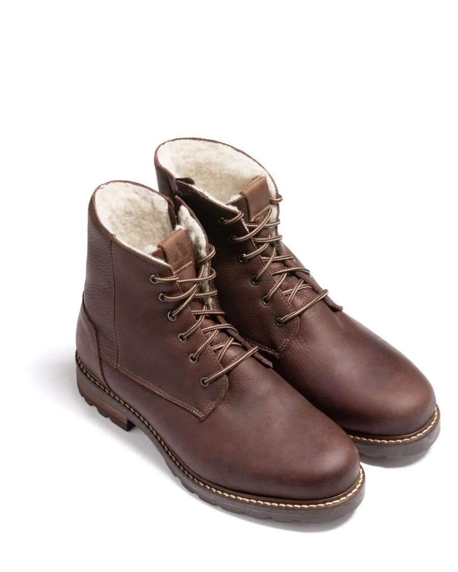 Avec sa doublure en laine naturelle de 650 g/m² et sa semelle intérieure de 10 mm, la VIKTOR vous promet une chaleur incomparable, même lors des journées les plus froides. La semelle extérieure antidérapante en thermo-caoutchouc vous offre une stabilité optimale sur les surfaces glissantes, tout en restant flexible et durable. Le brun chocolat du cuir, associé à la douce doublure crème, fait de cette botte l’alliance parfaite entre design et fonctionnalité.